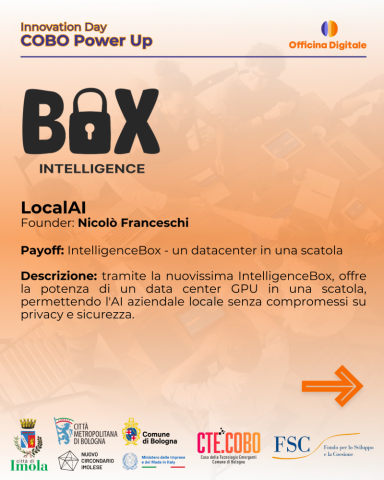 - LocalAI (Founder: Nicolò Franceschi): IntelligenceBox, un data center GPU in una scatola per AI aziendale sicura.