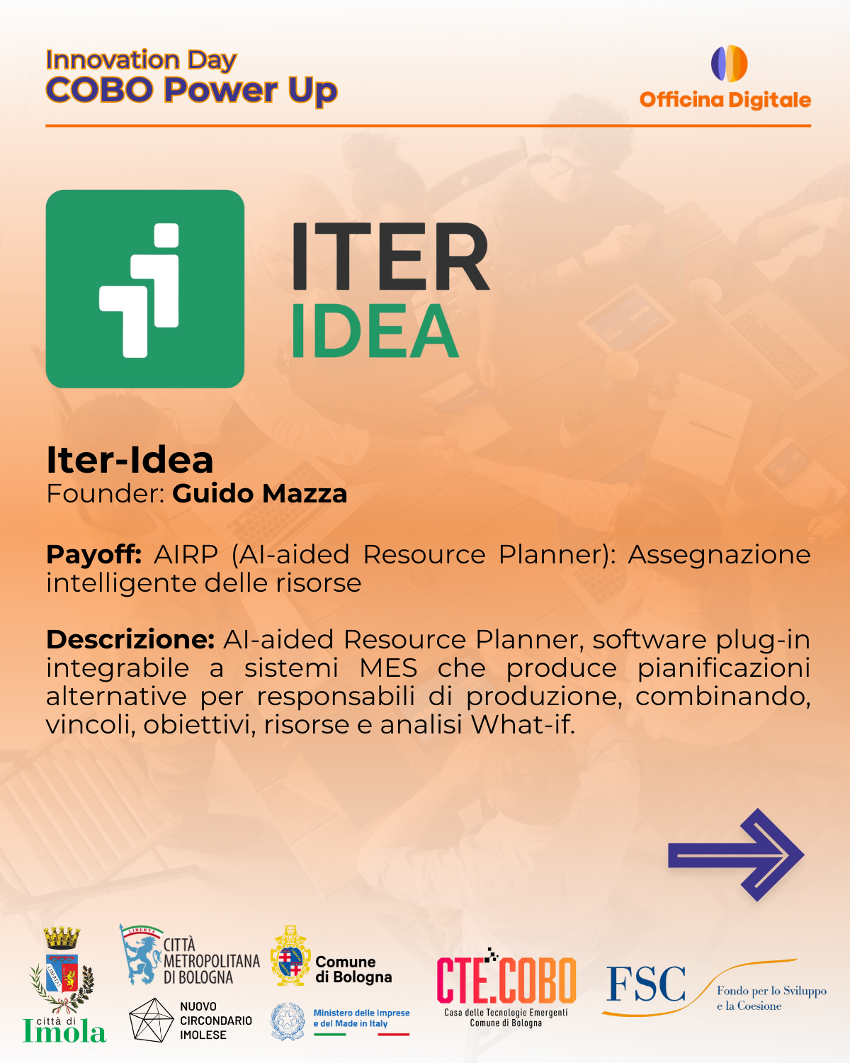 - ITER IDEA (Founder: Guido Mazza): AI-aided Resource Planner per pianificazioni alternative nei sistemi MES.
