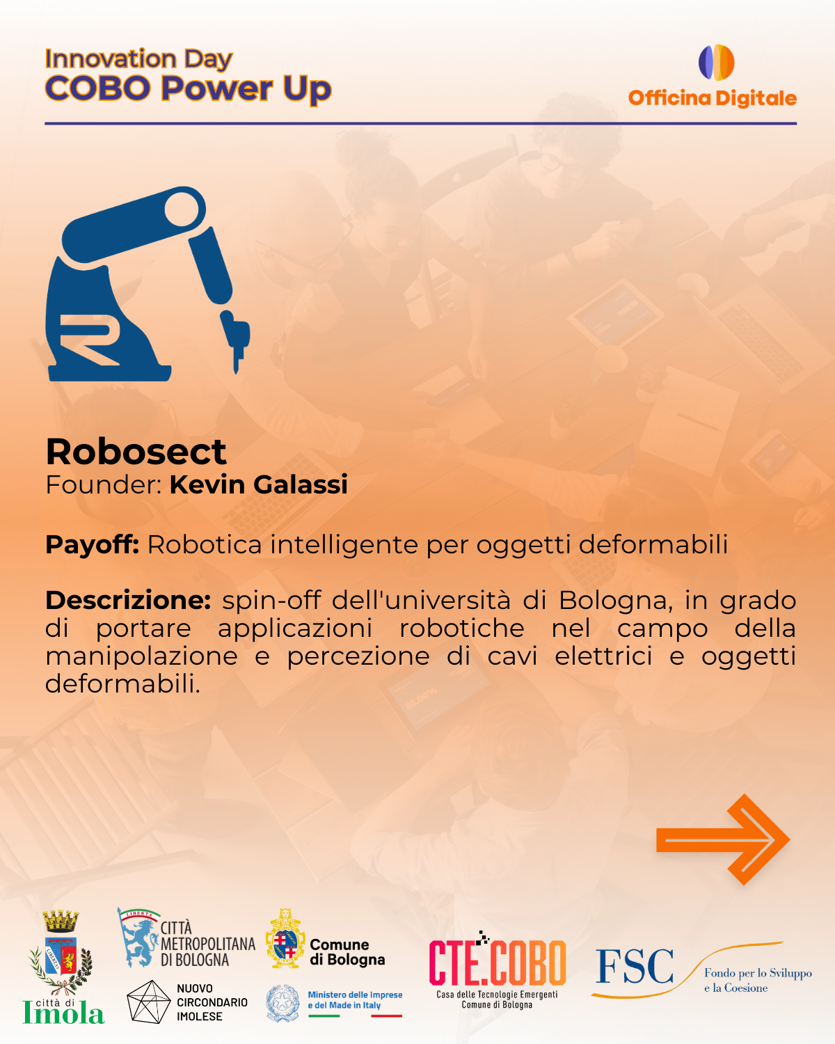- ROBOSECT (Founder: Kevin Galassi): applicazioni robotiche per manipolazione di cavi e oggetti deformabili.
